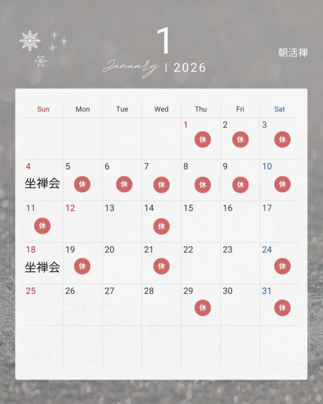 朝の習慣としてお寺参りはいかがですか?説法はなく、ただ一緒に坐禅とお参りをしていただき解散します。無料で予約不要です。